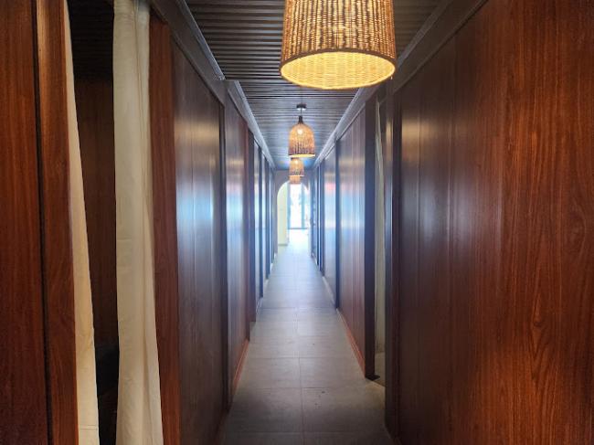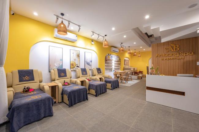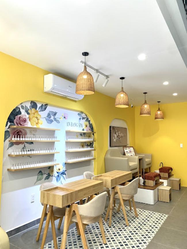 An Bang Spa mang đến không gian yên bình với ánh sáng dịu nhẹ, tông màu ấm áp, và điểm nhấn từ gỗ thanh lịch.Tại đây, các giường massage thoải mái được chuẩn bị sẵn sàng cùng khăn, nến thơm và hoa tươi, tạo nên cảm giác thư giãn tuyệt đối. Không gian mở với cửa sổ lớn đón ánh sáng tự nhiên, rèm mỏng nhẹ nhàng khiến không gian thêm phần thoáng đãng. Các chi tiết nhỏ như tinh dầu và đá thư giãn góp phần tạo nên một trải nghiệm nghỉ dưỡng cao cấp, lý tưởng cho việc tái tạo năng lượng và tận hưởng những khoảnh khắc yên bình.